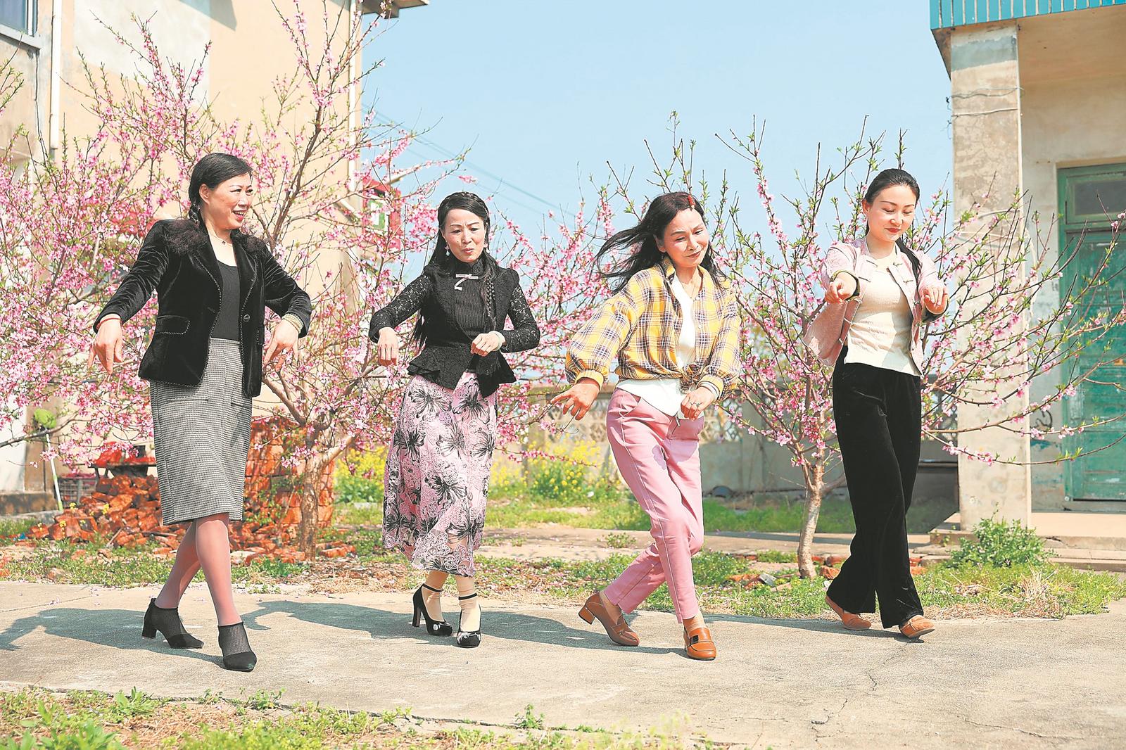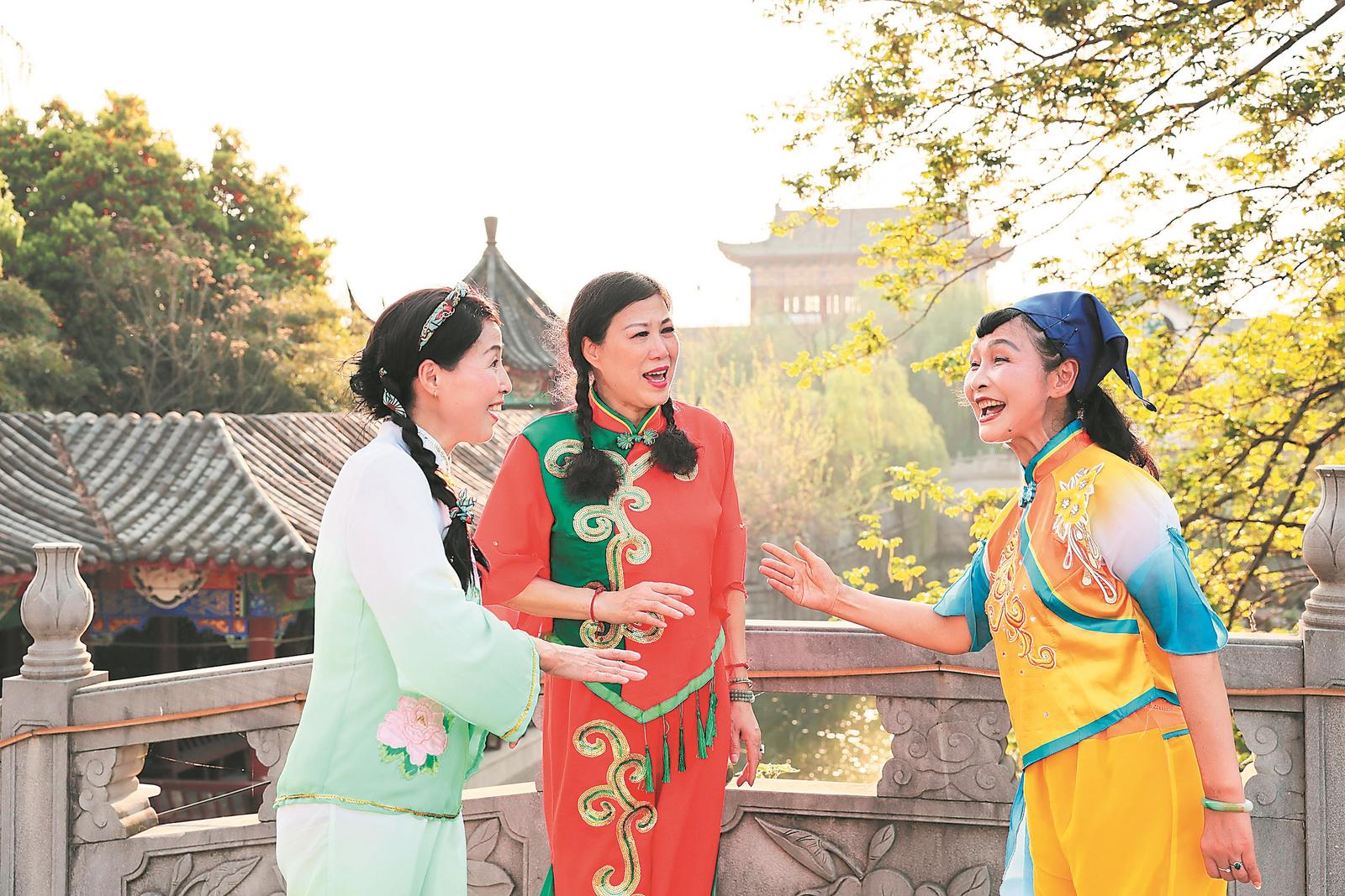 3月26日,陈跃兰(右一)和徒弟们在当涂县太平府文化园演唱民歌,通过口耳相传进行师徒教学,传承当涂民歌。
