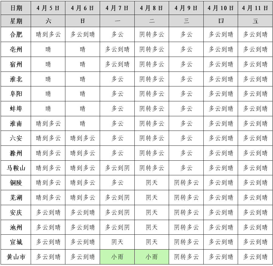 据“安徽气象”最新消息,未来一周全省以多云天气为主,仅7-8日江南南部有小雨;未来一周全省气温以逐渐回升为主,其中10日江北和11日江南部分地区最高气温升至30℃以上。