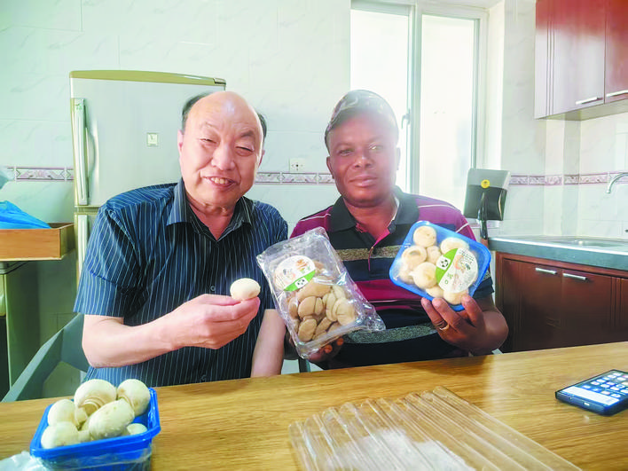 “采用中国援助的菌草,打碎加上木屑等辅助材料,改进灭菌设施,就能把蘑菇产量提高两倍。”