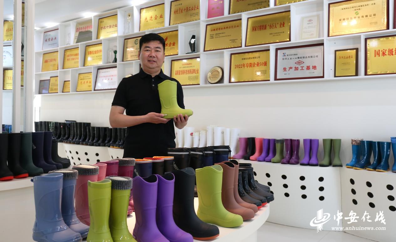 为提升废旧塑料产品附加值,申乾成先后创办了PVC塑料颗粒生产企业和前程塑胶厂。2010年,他力邀与其合作多年的广东一家雨鞋生产企业来光武镇考察,投资创办了安徽冠泓塑业有限公司。
