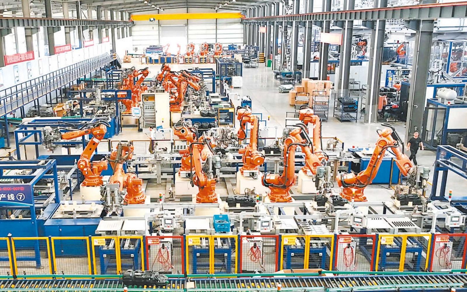 芜湖顺荣汽车部件有限公司生产的混动塑料高压油箱为业内标杆。图为该公司柔性自动化生产线。 杨骏 摄