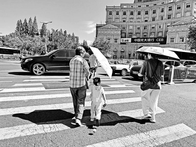 8月20日,市民走过热辣滚烫的合肥街头。