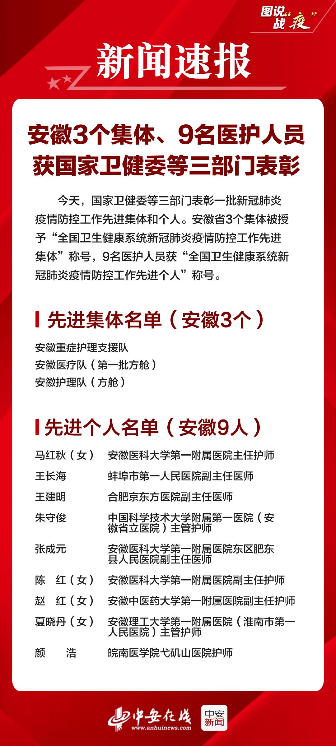 安徽3个集体、9名医护人员获国家卫健委等三部门表彰