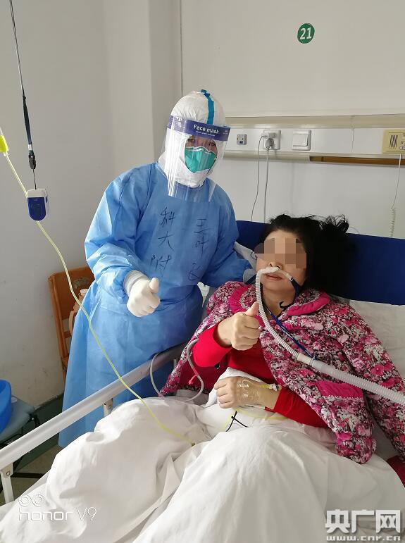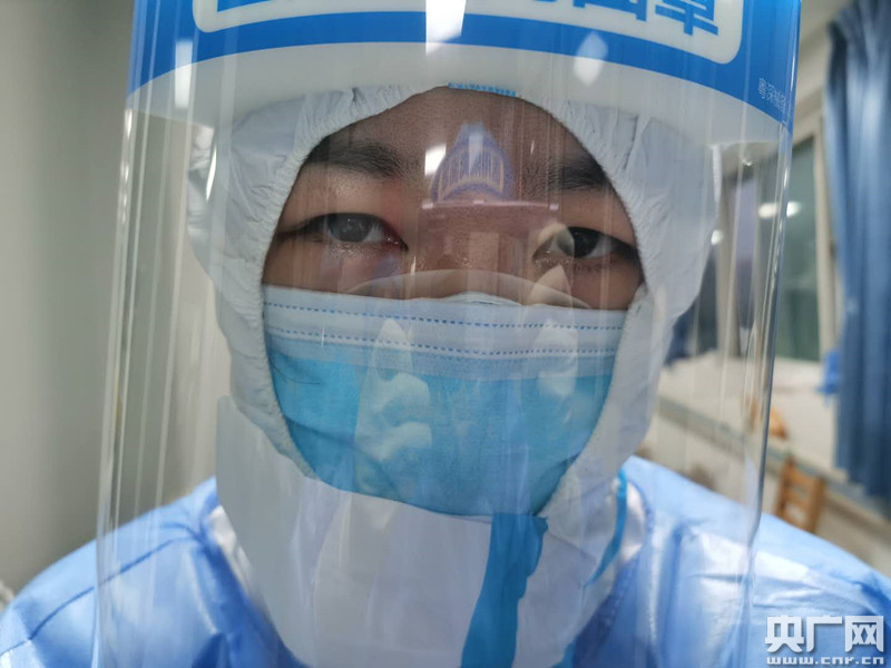 中国科大附一院(安徽省立医院)援助湖北医疗队队员王叶飞在病房 央广网发 安徽省卫健委供图