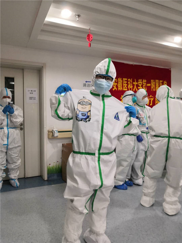 卡通画装点防护服 抗疫前线特殊的三八节礼物