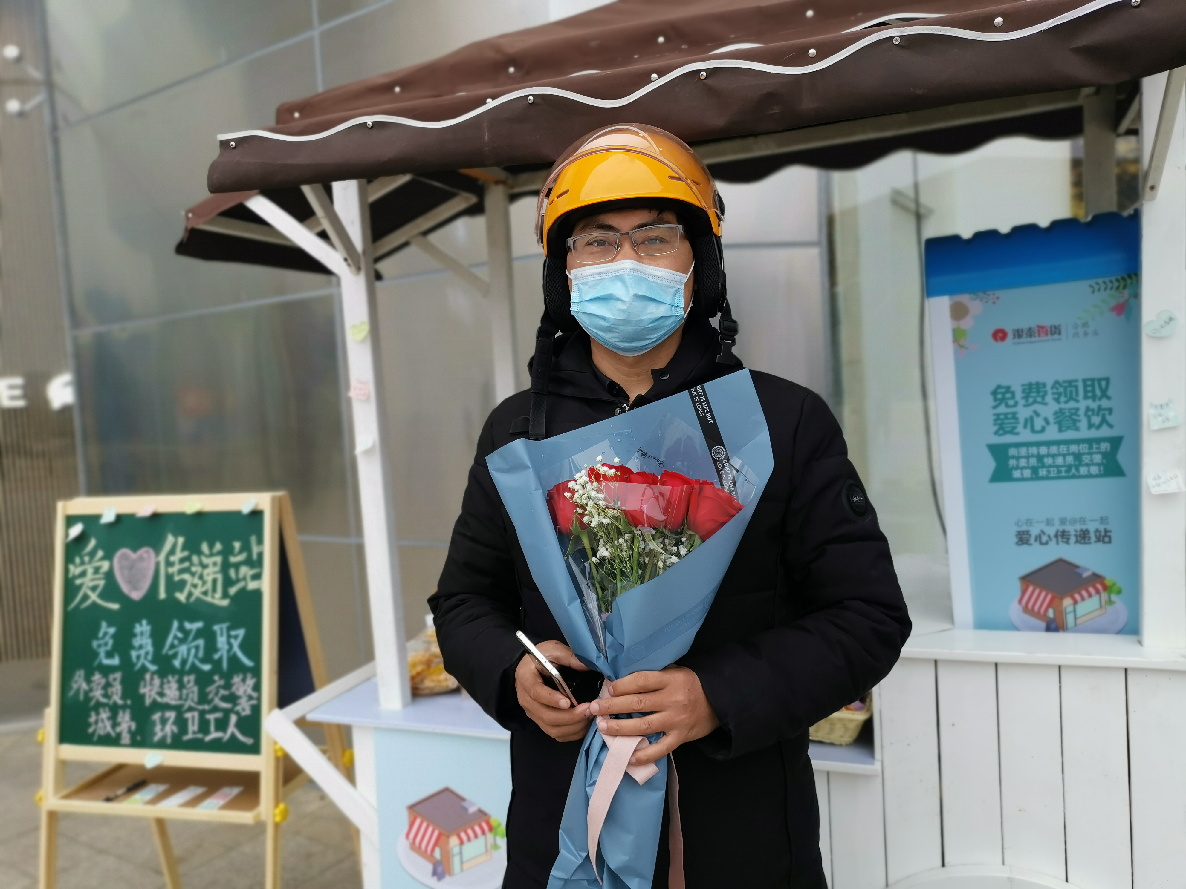 “外卖小哥”免费领取玫瑰花作为妻子的“三八妇女节”礼物