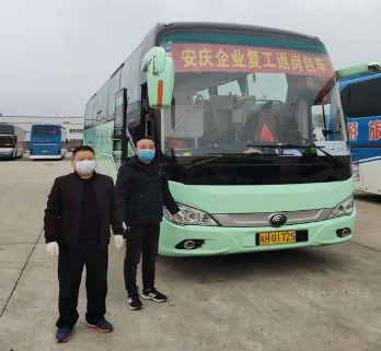 3月1日下午,安庆市文进旅游客运有限公司接到安庆泰亚鞋业有限公司的包车请求,急需在3月2日发车到贵州铜仁松桃接20名工人返宜复工。