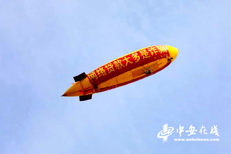 记者在现场看到,热气球在离地几十米的高空中盘旋,明黄的艇身上,“网络刷单都是诈骗”“网络贷款大多是诈骗”等鲜红的大字分外醒目,伴随着马达的轰鸣声,更是引人注目。