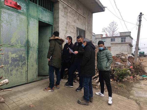 图为朱建波(左三)与县纪委监委工作人员一起查看仲兴居委会外地返乡人员居家隔离情况。邓小宾 摄