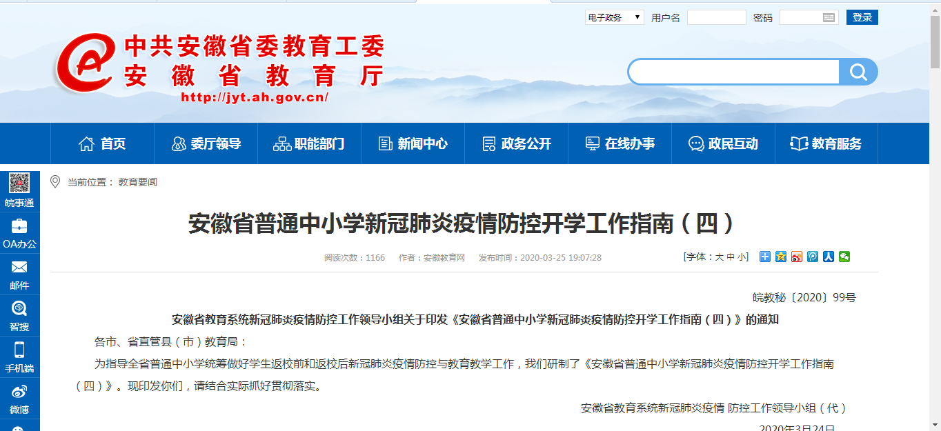 安徽发布开学工作指南