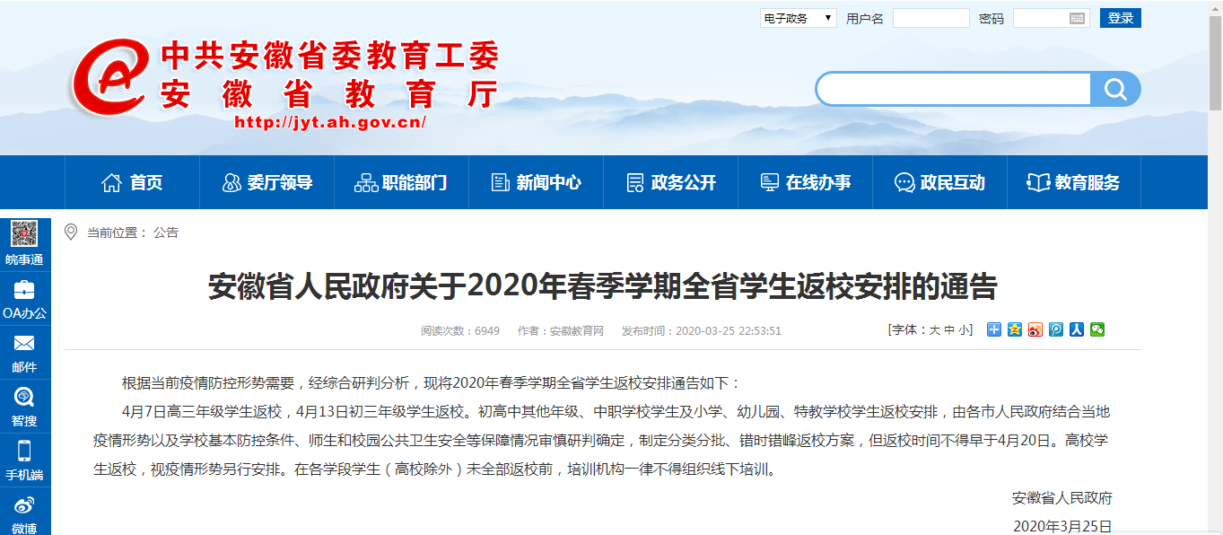 中安在线、中安新闻客户端讯 3月25日晚,记者从安徽省教育厅获悉,经综合研判分析,4月7日高三年级学生返校,4月13日初三年级学生返校。