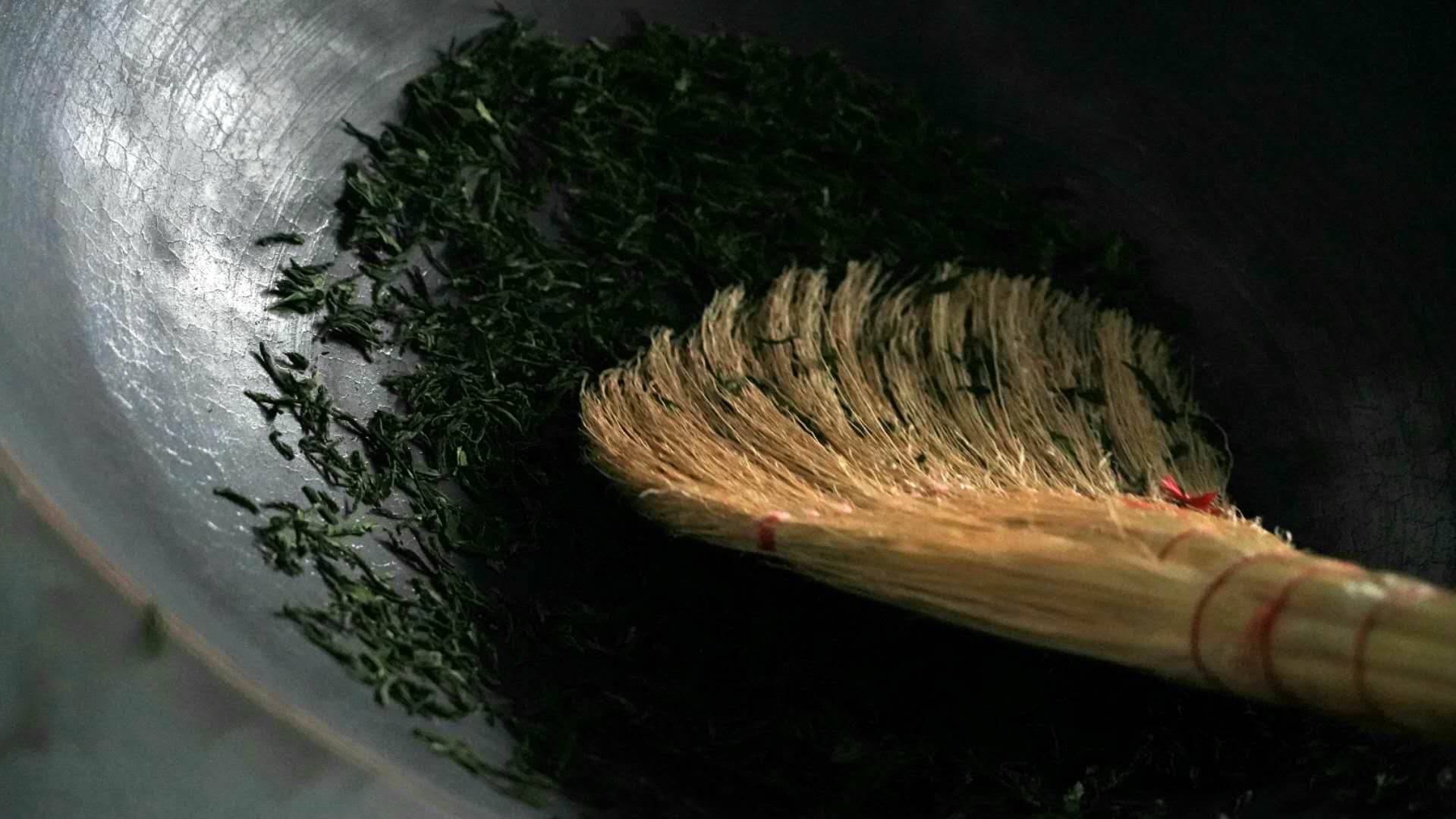 4月20日下午两点,大湾村茶场的茶叶炒制车间,机器轰鸣,工人们正来回不停地翻炒鲜叶,远远便能闻到浓浓的茶香。