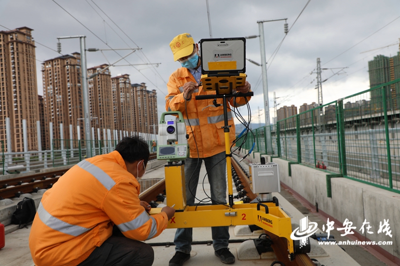 进入3月份,合肥、芜湖工务段等单位技术人员合力攻坚,对商合杭高铁合肥至湖州段线路进行检测和精调。(吕金艺 摄)
