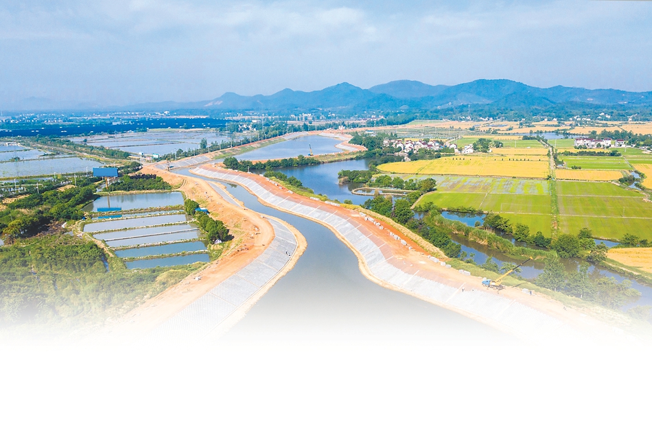 安徽省水利民生工程——繁昌县漳河新平段加固工程鸟瞰。 本报通讯员 肖本祥 摄