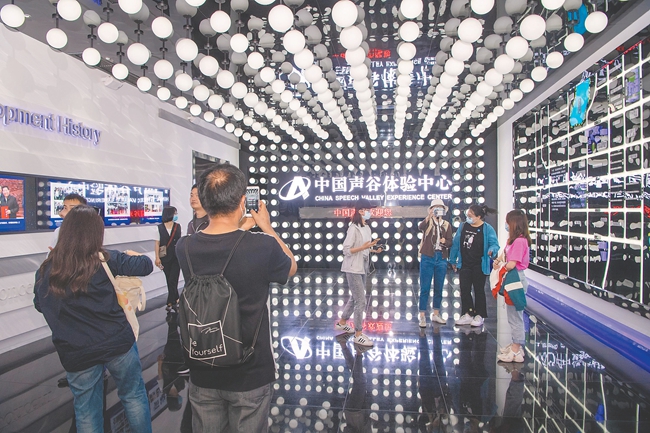 图为长三角一体化发展集中采访报道团在中国声谷体验中心采访。记者 李博 摄