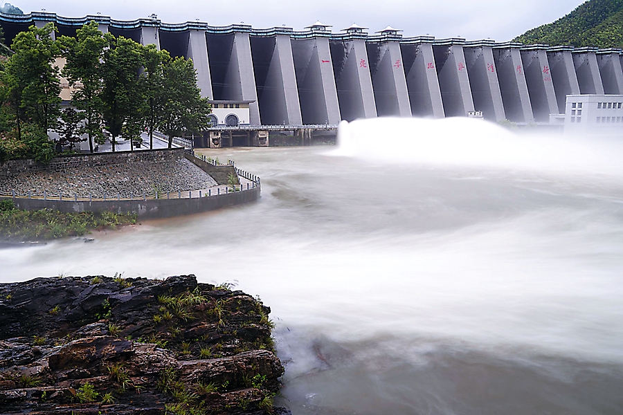 受强降雨影响,6月21日,霍山县佛子岭水库开始泄洪。通讯员 钱霞/摄