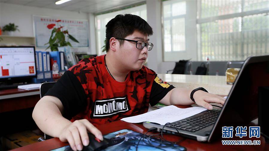 蔡瑞在安徽省金寨县桃岭乡高湾村村部工作(6月18日摄)。 新华社发(胡锐 摄)