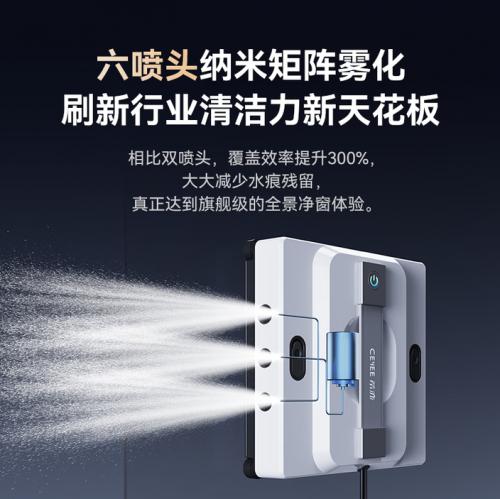 希亦W1在续航能力和操作便捷性方面同样出色。W1采用双舱水量设计,可拆卸的双50ML大水箱,总容量高达100ML,是传统小水箱三倍,一次加水即可覆盖整屋落地窗,配合六喷头雾化输出,出水更稳定,清洁更持久。机身设计轻薄,仅8.9厘米的厚度使其能轻松进入狭窄窗缝。配合智能语音播报功能,设备可实时汇报工作进度,让用户随时掌握清洁状态,真正实现无忧操作。