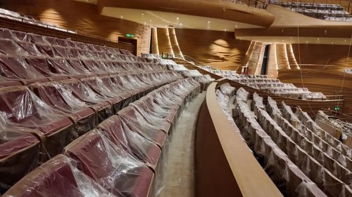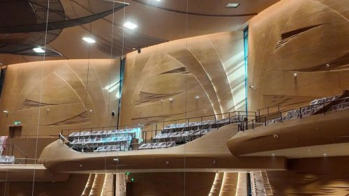 在无锡交响音乐厅项目建设现场,超过1200名一线建设者和管理人员正在火热大干。“太湖明月”主厅内部,室内精装修已经基本完成,1500个座位环绕着舞台,“葡萄园式”的结构力求让每个观众席位都是“黄金座椅”。主厅设计打破了传统封闭音乐厅的束缚,引入自然光,让音乐与光影相互辉映,打造一个“会呼吸”的交响乐空间。