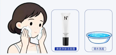 温和洁面:使用纽莱伊美清透净肤洁面露,轻柔地清洁肌肤,去除污垢和多余油脂,为后续护肤步骤打下良好基础。