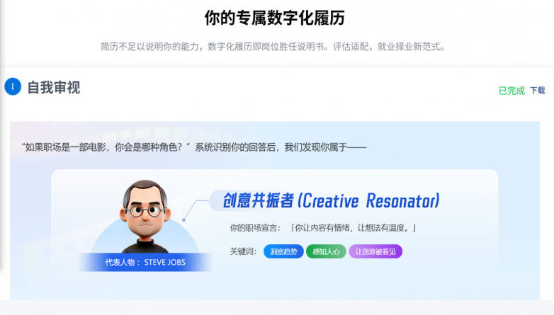 青昫之光V1.5的破局之道,在于构建了一套“匹配-提升-胜任”的全周期赋能体系。系统基于其自主研发的“兴趣-潜能-技能”三维评估模型,在精准识别用户职业适配方向的同时,首次引入AI技能提升模块与实时岗位需求匹配引擎,实现“知差距、补短板、验成果、稳上岗”的无缝衔接。