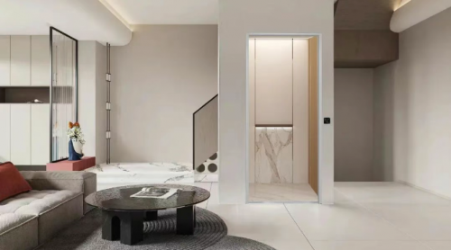 i520 ProⅡ极简几何系列电梯的设计灵感源于现代建筑美学,采用非对称设计打破传统电梯的刻板印象,以线条的跳跃与结构的张力展现空间动态美学。后壁采用斯卡帕叠级设计,搭配隐藏式灯带,在层层递进中展现流动光影,凝练现代气息。