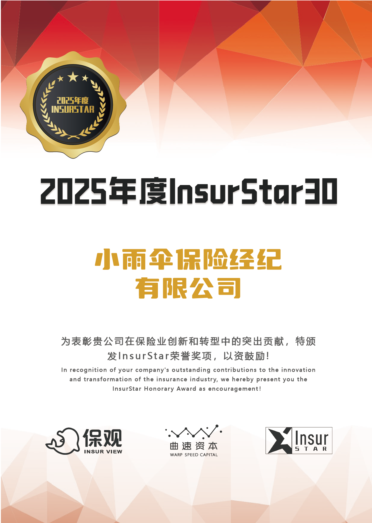 小雨伞保险经纪荣膺2025年度InsurStar30,彰显保险中介标杆实力