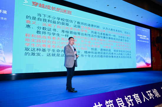 中国教育科学研究院研究员储朝晖直面当前教师执业环境中的深层结构性问题,如自主权受限、评价体系单一、工作负担过重等。他明确提出“自主性水平是衡量教师心理健康的关键指标”,呼吁以“教育家精神”为核心驱动力,激发教师内生性专业创作活力。同时,他倡导学校推行民主化、人本化治理模式,打造让师生充分发展的“人园”,从根本上优化教师执业生态,为教师心理健康保驾护航。