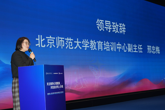开幕式上,北京师范大学教育培训中心副主任邢忠梅在致辞中强调,教师身心健康是教育高质量发展的“压舱石”,唯有筑牢这一基础,教育事业才能行稳致远。她呼吁推动教师关怀从“个体自救”向“系统护航”转变,构建全方位、多层次的支持体系。
