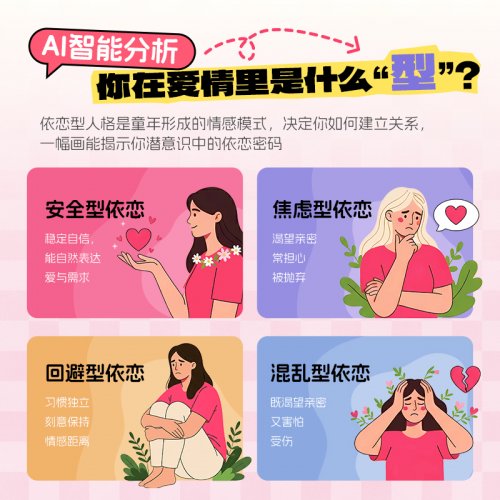 2. 情感依恋模式测试:深入分析你在亲密关系中的安全感来源与互动模式,识别属于安全型、焦虑型或回避型等类型,为理解自身的情感需求与关系卡点提供关键洞察。
