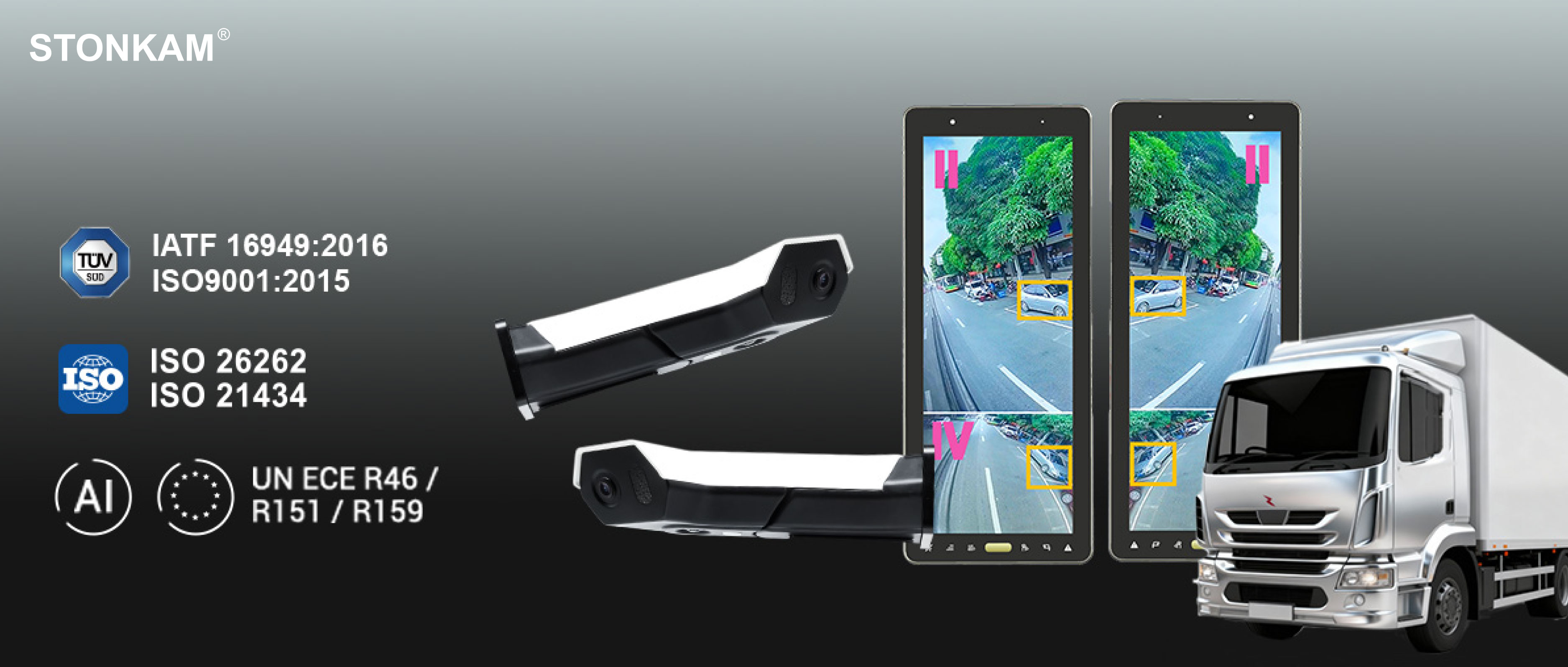 敏视AI CMS 电子后视镜系统针对商用车应用进行了优化设计,符合GB 15084-2022、UN ECE R46/R151/R159、ISO 26262等国内外主流法规要求,提供更广视野、更清晰影像及更智能的安全辅助能力,帮助车队在各种场景下获得更稳定、更安全的驾驶视野体验。