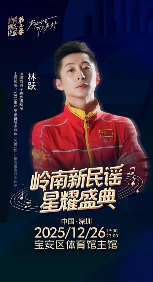 (通讯员:马依琳)12月26日,“岭南新民谣·星耀盛典”在深圳宝安体育馆举行。作为“岭南新民谣·第三季”的年度集中呈现,本次盛典通过多组原创音乐舞台演出,集中展示岭南文化在当代音乐语境中的多元表达。奥运跳水冠军林跃作为跨界创作者受邀参与本季创作,并在当晚担任开场嘉宾,演唱作品《Rise up together》。