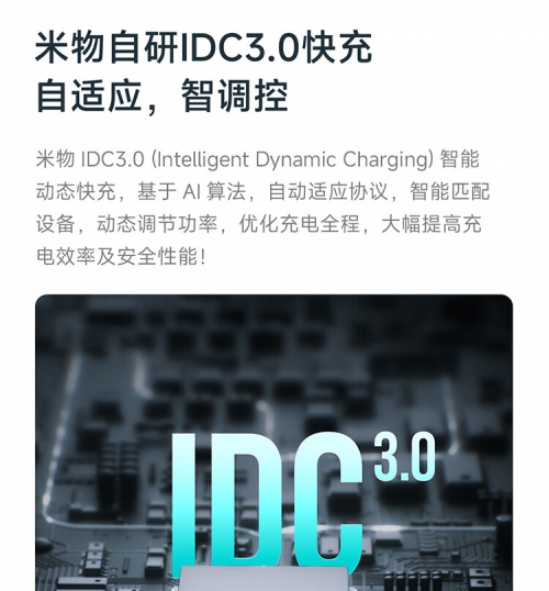 智能安全与细节设计同样拉满。产品搭载米物自研IDC3.0智能动态充电技术,AI算法加持,自动识别设备,智能匹配协议,动态调节功率,在电压电流、充电效率及发热之间取得最优平衡点。
