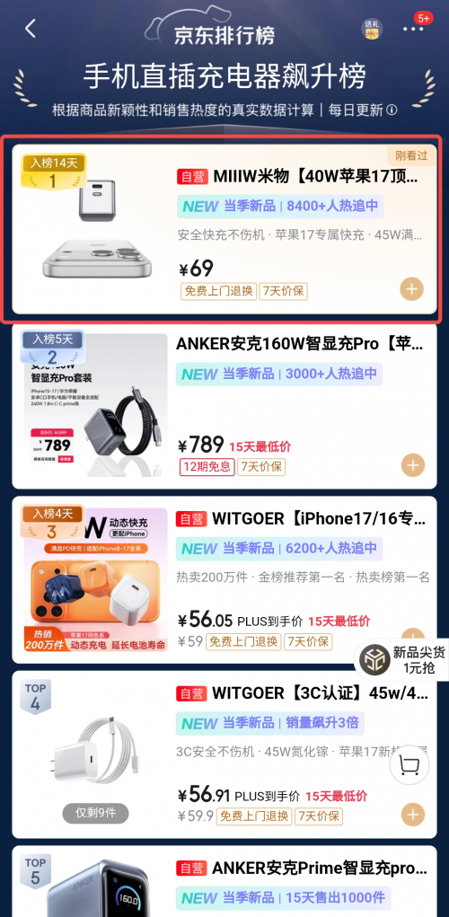 目前,米物小魔方45W氮化镓充电器已在京东、天猫、抖音等各大电商平台开售。一上线就大受青睐,连续霸榜京东充电器飙升榜TOP1!产品竞争力超能打!