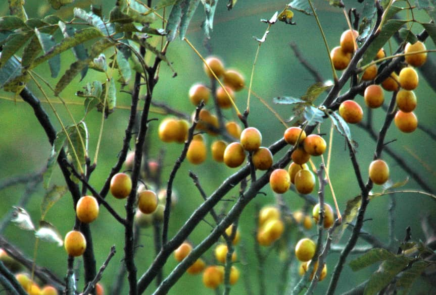 这封山野情书的“信纸”,是齐云山深处的野生南酸枣林。作为“中国南酸枣之乡”的专属宝藏,这片被97.6%森林覆盖率环抱的秘境,是南酸枣的天然生长地。这里的野果不沾人工肥料,只沐山间清辉、饮岩间晨露,从挂果到成熟要历经十年轮回的滋养,且雌雄异株,四棵树中仅有一棵雌树可能结果,每年产量高低全凭“天意”馈赠。