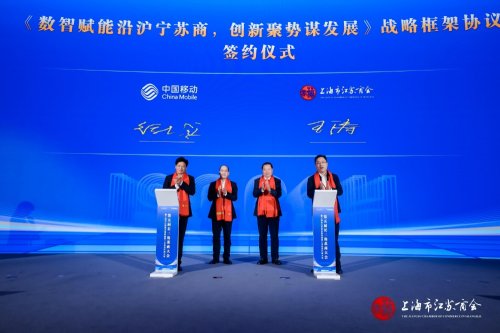 为切实推动苏商抢抓数字化变革机遇、提升专业发展能级,上海市江苏商会现场与中国移动通信集团上海有限公司签署战略合作协议,未来将围绕5G、人工智能等前沿技术应用开展深度合作,助力企业降本增效与创新转型,共同探索培育中国特色一流商会组织的有效路径。