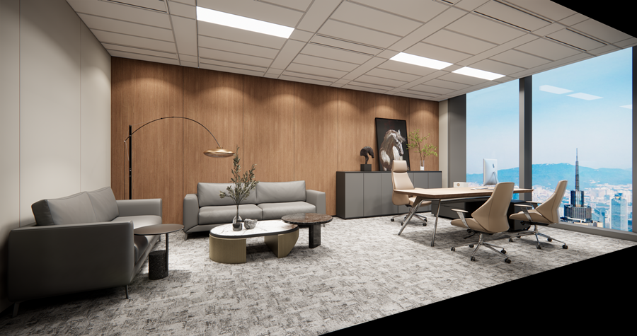 产品更叠加三大核心体系,打造有温度的增长空间:AI大脑联动恒光、恒温、节能系统,兼顾舒适与能效;浮筑地板+隔音吊顶组合,将室内楼板撞击声控制在优于住宅标准水平,营造专注办公环境;极简会议中控与场景化软装,让空间既是员工激发创造力、凝聚向心力的场域,也是高端商务谈判、客户接待的优质载体。