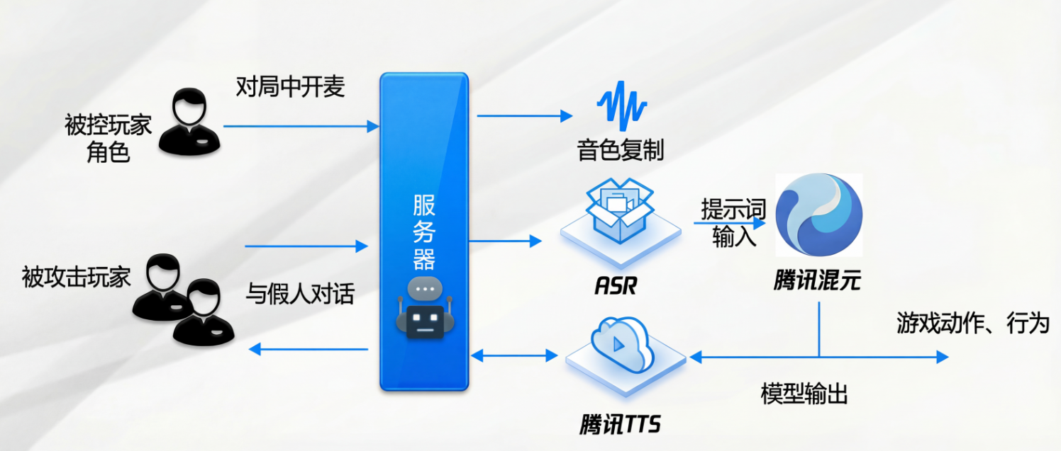依托TTS声音复刻和语音合成能力,AI角色能够实现高精度的音色还原,生成的语音带有丰富的情感变化与自然的语调起伏,避免了传统AI语音机械、生硬的问题。这一整套语音解决方案,使AI在听觉层面与真实玩家高度相似,显著增强了玩家在对局中“真假难辨”的心理体验。