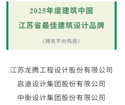 据悉近日,ARCHINA建筑中国面向全球正式发布“2025年度建筑中国·最具品牌影响力评选”企业榜单,江苏龙腾工程设计股份有限公司荣膺“2025年度建筑中国·最具品牌影响力民营企业TOP100”第16名、“2025年度建筑中国·江苏省最佳建筑设计品牌”。