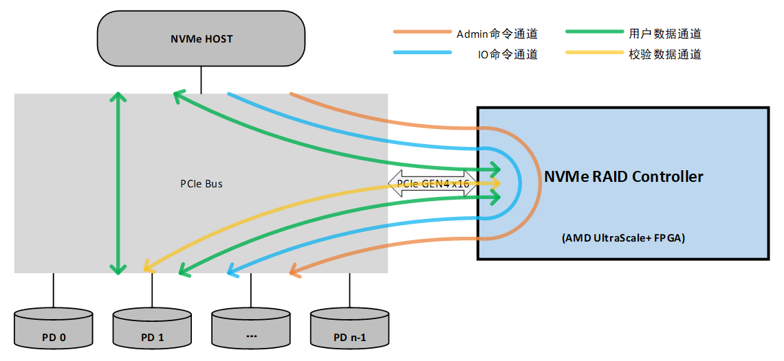 与依赖CPU算力的传统软件RAID和串行硬件RAID不同,这款产品通过纯FPGA硬件逻辑实现IO命令解析处理及校验运算加速,将CPU占用率降至零,让宝贵的算力资源完全服务于客户业务应用。