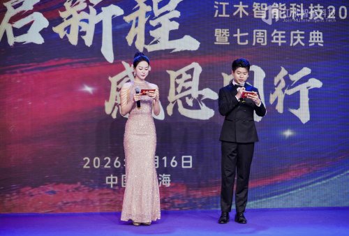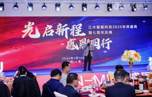 2026 年 1 月 16日,上海白金汉爵大酒店 1 层 182 宴会厅(大零号湾国际会议中心)灯火璀璨、暖意融融,上海江木智能科技 2025 年终盛典暨 7 周年庆典在此盛大举行。