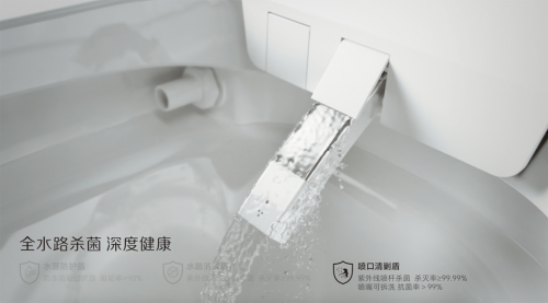 在防护范围上,创新性覆盖“进水—水路—出水”全流程,确保清洗水流经的每一寸管路、每一个关键节点都处于动态灭菌防护之下,从源头杜绝二次污染风险。与传统静态或局部杀菌技术不同,该系统可在水流实时通过时进行高效持续灭菌,保障每一次用水均为洁净活水。同时,将洁净焦点从坐圈、陶瓷体等可见表面,延伸至隐蔽却关键的水路内部,精准破解消费者对“内胆水”污染的核心顾虑,推动健康防护从“表面”迈向“深层”。