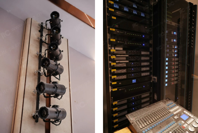 为满足企业各类活动对灯光效果的差异化需求,itc舞台灯光系统配置了多组摇头灯、影视灯、固定染色灯、追光灯等舞台专业灯具,支持会议照明、演出渲染、拍摄辅助等功能,创造出温馨舒适且光影交错的舞台氛围。