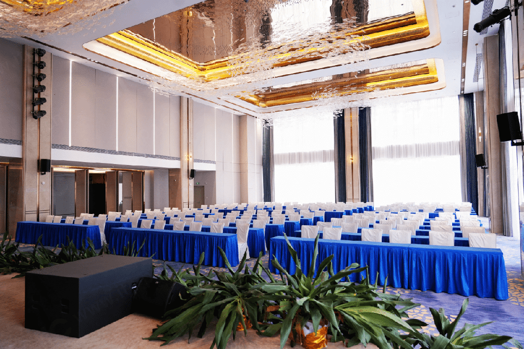 加中生物科技多功能会议厅场地面积较大,可容纳300余人,为了保证整个会场内充分的声压级,itc采用了2组线阵列全频音箱作为会场主扩声,分别吊挂于主席台两侧,对观众席实现精准的大面积声音投射,为会场提供高清晰度和高穿透力的声音覆盖。同时配备辅助、返听、台唇、超低频音箱,实现宽广区域的无死角覆盖,确保从台口到后排的每位观众都能获得均衡一致的声场体验。