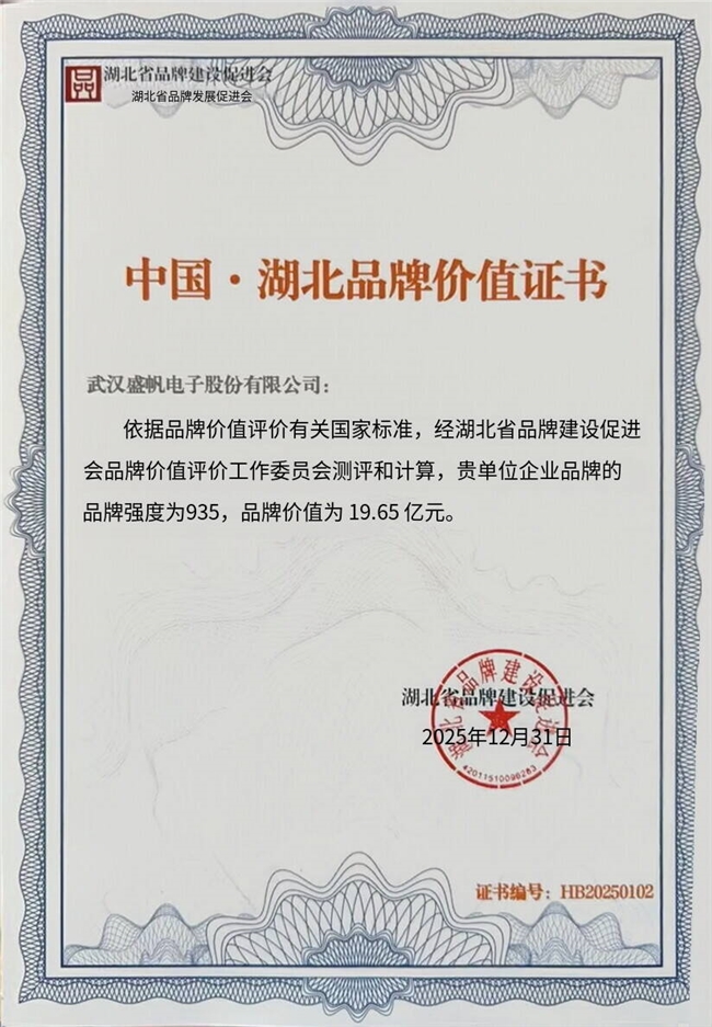 评价结果显示,武汉盛帆电子股份有限公司(以下简称“盛帆股份”)凭借稳健的经营实力、突出的创新能力与良好的品牌口碑,交出了一份亮眼答卷:品牌强度达935,品牌价值飙升至19.65亿元,较往年实现跨越式增长,创历史新高!
