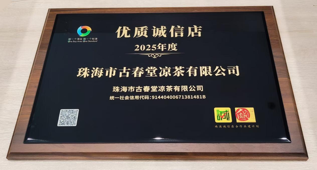 古春堂历史悠久,百余年来从街边的凉茶铺子到知名凉茶连锁品牌,发展愈发壮大。“凉茶里的草本是否地道,火候是否到位,口味是否稳定?”这些看不见却始终在执行的标准是古春堂能稳定经营并荣获2025年度优质诚信店荣誉的关键所在。诚信,从来不是一句口号。它是古春堂刻在骨子里的经营理念,正所谓“做人如凉茶,凉茶即良茶”,古春堂从原料采购开始严格把关,确保每一味草本药材都原味正宗;到制作过程的精细把控;再到服务环节的真诚热情,让每一位顾客都能感受到贴心关怀。古春堂用实实在在的行动,将诚信二字贯穿于经营的每一个细节之中。