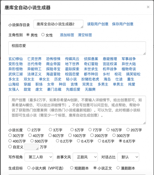 写小说的Manus来了,唐库全自动写小说平台一键生成500万字长篇小说