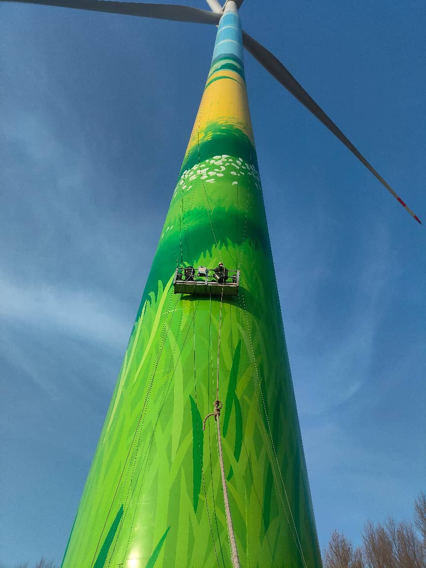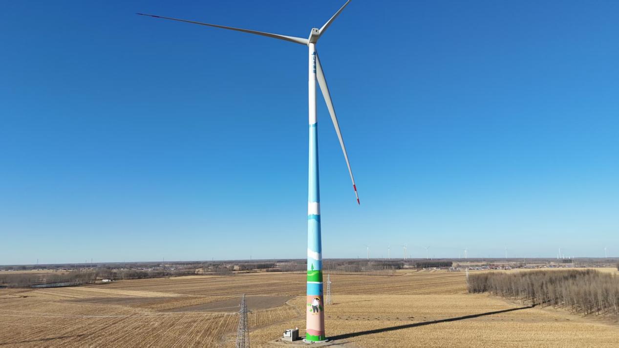 从风沙治理到绿色发电,从工业设施到人文景观,辽水彰武137.5MW风电项目混塔彩绘工程,既是江苏宏亚高空匠心技术的生动展现,也是彰武地区生态转型与文化传承的缩影,为绿色发展之路增添了浓墨重彩的人文篇章。
