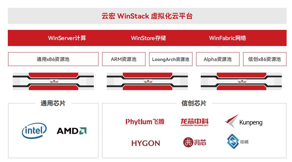 面对上述挑战,云宏CNware虚拟化平台展现了突出的“全栈兼容”能力。其产品不仅广泛支持RedHat、CentOS、Windows Server等系列的多个老旧版本,更在硬件生态与新兴算力层面实现了强大包容性。