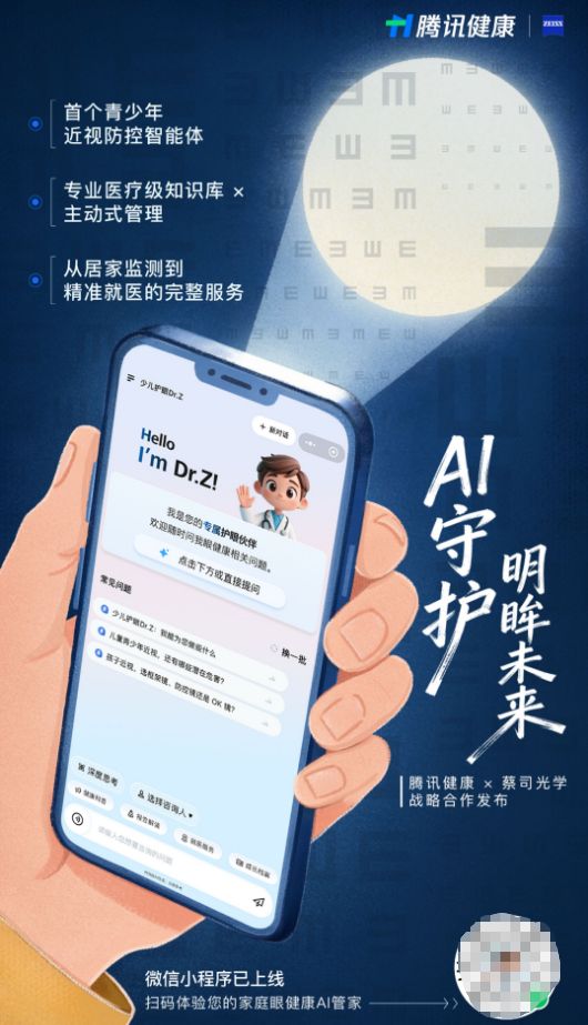 国内首个青少年近视防控智能体正式上线!腾讯健康联合蔡司光学发布
